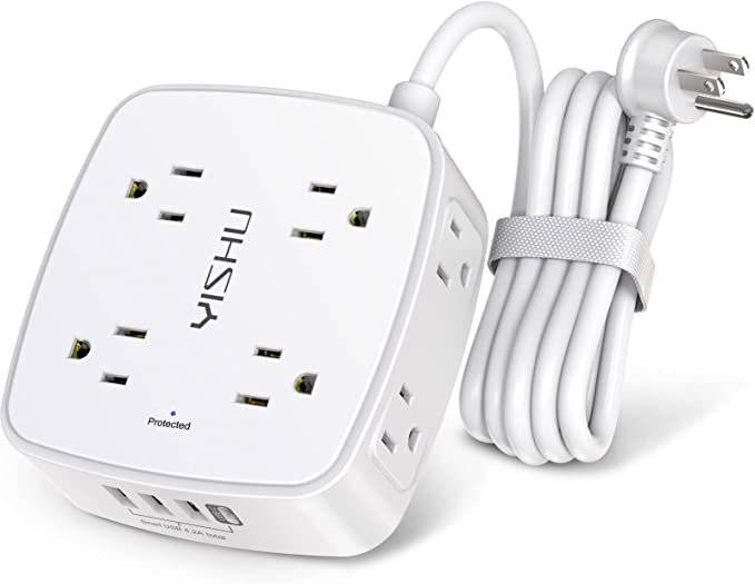 This 3-side power strip features 8 AC outlets and 3 USB A and 1 USB B, and can power up to 12 devices simultaneously. It’s wide range voltage design can be used on 120v to 240v circuit. Surge protection rated for RoHS, FCC and ETL certifications.