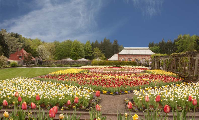 To landscape the grounds, Vanderbilt contracted Frederick Law Olmsted, the pioneer of landscape architecture responsible for revolutionizing public spaces for livability, conservation and beauty. Walking paths meander through the grounds, across stone bridges, passing by small brooks, niche gardens, and cunningly placed statuary. A walled garden is cultivated year around for floral variety, most notable in the spring when it’s alight with multicolor tulips. The greenhouse boasts a collection of orchids, ferns and tropical foliage from around the world.
